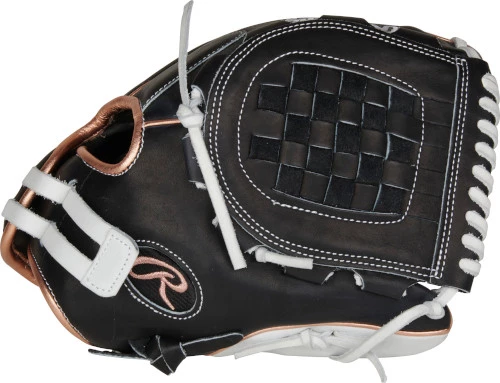 In addition, this black shell glove with white trim and rose gold